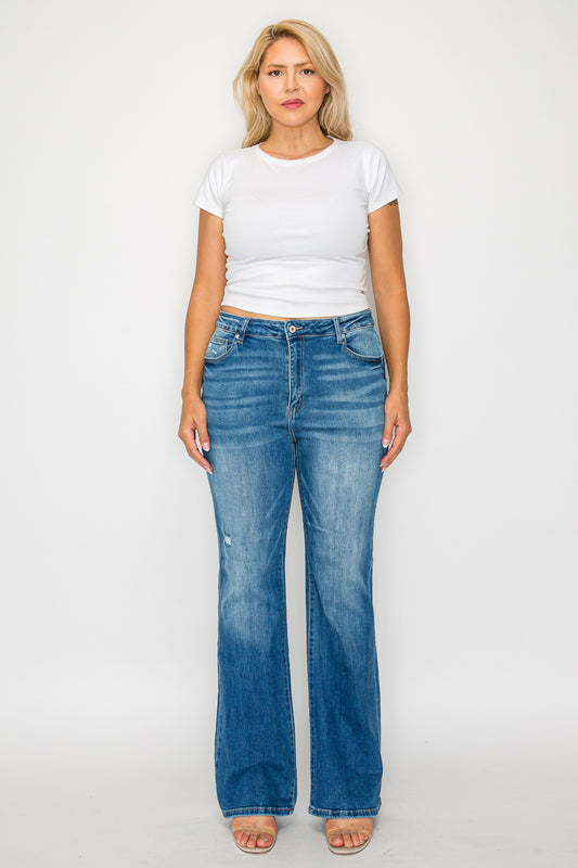Regular price $98.00 USDRegular priceUnit price / perSale price $98.00 USDThese premium high-rise flare jeans combine style and comfort with their classic medium wash and subtle distressing. Made from quality denim with just the right amount of stretch, these jeans feature a flattering high-rise waist and flared leg silhouette. The traditional 5-pocket design offers practical storage while maintaining a sleek appearance. Perfect for casual or dressed-up occasions, these jeans pair well with any top while providing all-day comfort and durability.